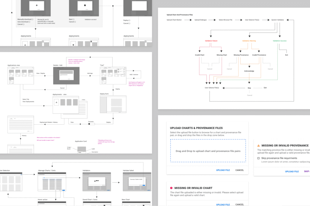 To begin, I reverse-engineered the existing designs to understand its structure and identify workflow gaps. Working with the Product Director and UX Director, I audited the current experience and documentation to clarify goals, risks, and user needs. From there, I defined end-to-end workflows that mapped the deployment journey—from application selection to lifecycle management.