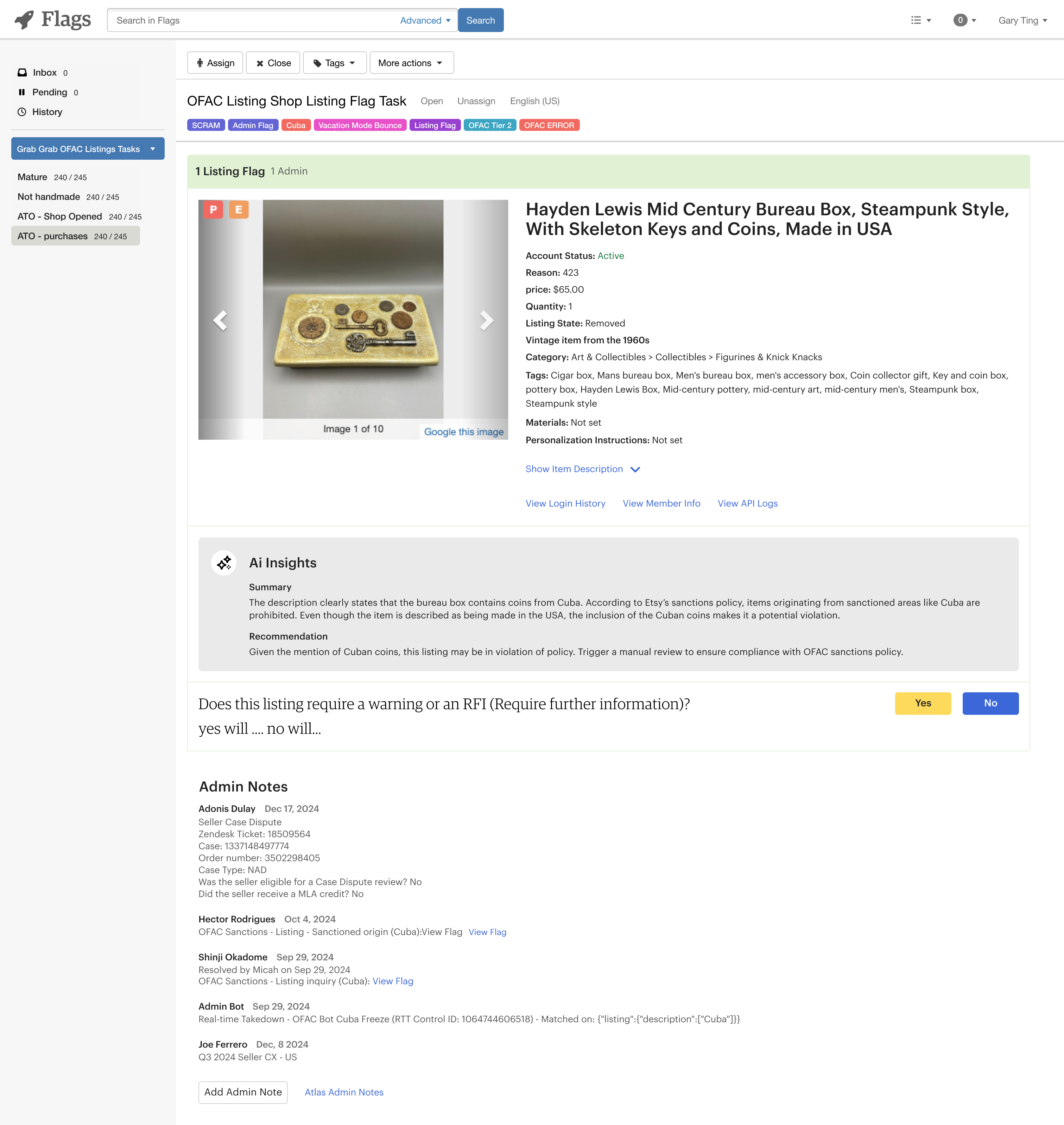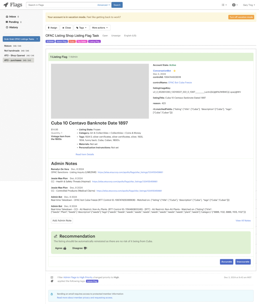 Etsy’s Financial Crimes team manually reviewed thousands of listings per month overwhelming agents and inflating operational cost